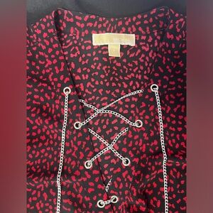 Micheal Kors Chain Lace-Up Blouse Red and Black