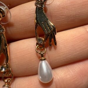 Victorian Golden Hand Baroque Pearl Drop Earrings
