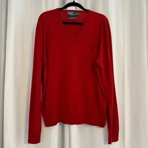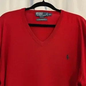 Polo Ralph Lauren Merino Wool V-Neck Sweater Red Men’s XXL Slim Fit