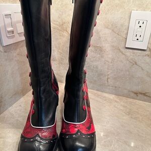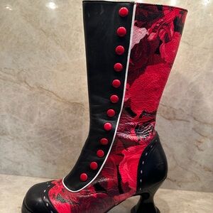 Bold black and red design. Unique button accents. Perfect for a standout look.