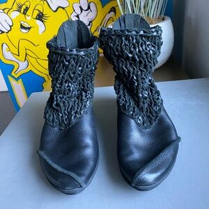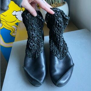 Like New TRIPPEN Crochet Leather Witchy Boots from Paris. Has awesome cross heel. Size 39 but runs small and fits me as 38 or 7.5 perfectly. Insole 9.6”. Just under 2” heel, super comfortable like a ninja. 5” zipper up the back. Normal width. Excellent condition, worn once, no flaws. $490 retail. Smoke free, pet free, perfume free home.