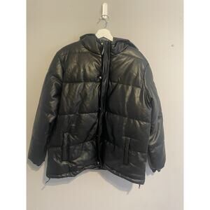 Pretty Little Thing NWT Black Faux Leather High Oversized Puffer Size Medium