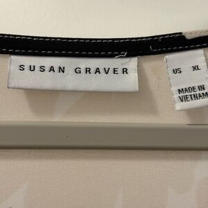Chic floral tunic with an asymmetrical hem. Bold black and yellow design. Perfect for versatile styling. Size XL.