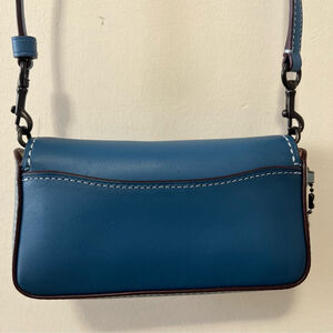 It consists of one large compartment and a smaller one in the front, a slip pocket on the back and has a super cute built in kisslock coin purse inside. Inside, you will also find the Coach creed patch with the style number of the bag.