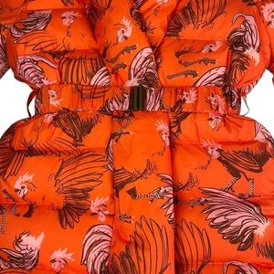 Rachel Antonoff Midi-Length Toni Puffer Jacket Orange Roaster Print XS