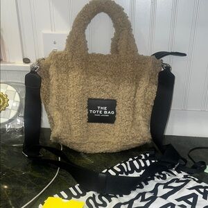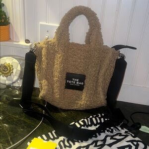 Chic Marc Jacobs tote with soft shearling texture. Stylish and versatile for any occasion.