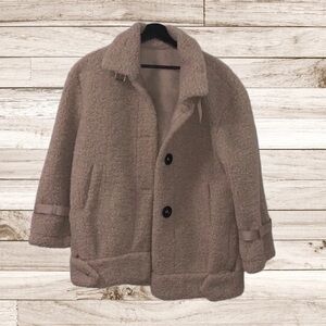 Stay stylish and warm with this elegant cream teddy jacket. Perfect for any occasion, this jacket combines comfort with a chic look.