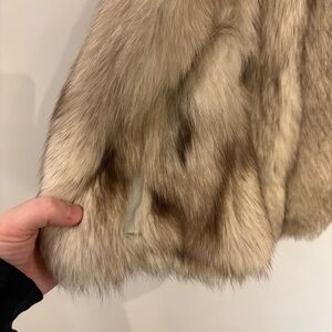 Real Fox Fur hidden leather panels between the fur and leather trim inside coat - metal clasps closure