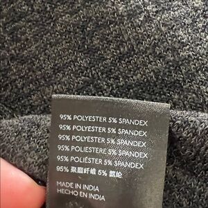 Anthropologie long sleeve cropped top with a v-neck and twisted front. Color is a dark heathered charcoal.