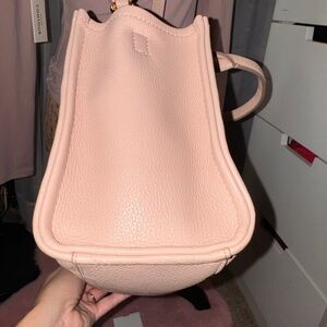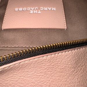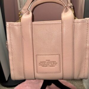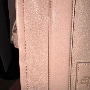 Marc Jacobs Tote size small, a rose/blush color. Please note the wear such as creasing, and color rubbed off in some spots, seen in photos. This bag is approximately 5 years old, purchased at Neiman’s.