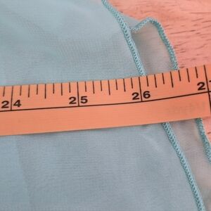 This Eclipse sheer blouse in a refreshing aqua blue is a versatile staple for any feminine aesthetic. Featuring intricate silver, gold, and earthy brown embroidery on the shoulders, it brings a touch of bohemian sparkle to a classic silhouette. The lightweight, sheer chiffon-style fabric is fully lined for coverage, creating a flattering, flowy A-line drape. Please see the measurements below as this is a slim fit that fits more like a large.