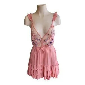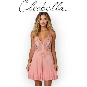 Romantic Pink Anthropologie Cleobella Lace Tiered Mini Dress XS Blush Chic Boho