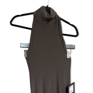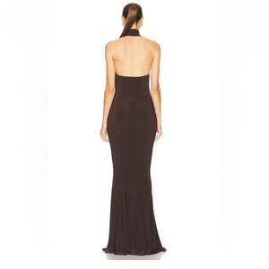 NORMA KAMALI Halter Turtleneck Fishtail Gown Maxi Dress brown Revolve NWT S
