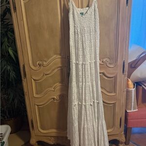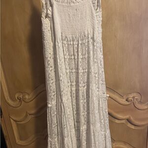 This chic ivory lace maxi dress offers a graceful and timeless style. Perfect for any special occasion, its elegant design ensures you stand out.