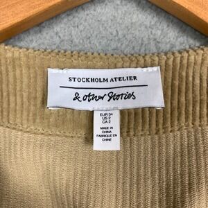 & Other Stories Mini Dress Size 2 Beige Corduroy Button Up Workwear Retro Hippie