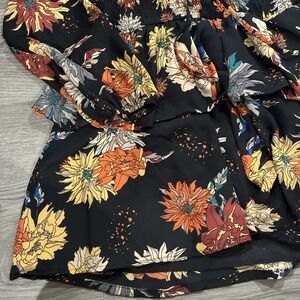 Revamped Black Floral Smock Waist Tie Chest Tiered Bottom Long Sleeve (L) Dress