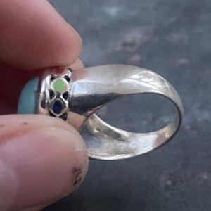 925 Sterling Silver Turquoise Ring w. multicolor design Size 8