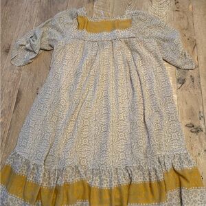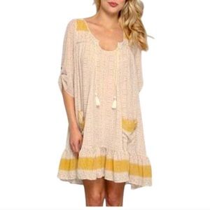 Free People Penny Lane Dress Boho Mini Peasant Shift Floral Chiffon Size XS