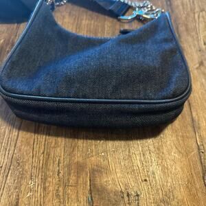 dark denim, mini purse, chain accessory, adjustable strap, crossbody bag, urban style, NWOT, silver hardware
