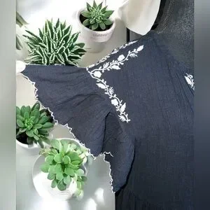 Free People Santiago Embroidered Mini Dress black cotton gauze white floral S