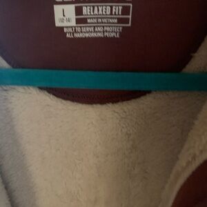 Durable Carhartt jacket with soft hood. Includes front zipper and practical pockets.
