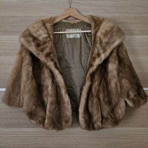 Vintage Mink Fur Capelet Cropped Fur Jacket | Light Brown | Old Hollywood