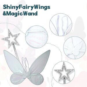 Features: This adorable 4-piece fairy costume includes iridescent butterfly wings, a sparkling star wand, a charming floral vine crown, and soft elf ears—everything needed for a complete fairy transformation. Designed with lightweight, soft straps and flexible wire for all-day comfort without slipping or pinching. The shimmering iridescent wings sparkle in the light, making your fairy look truly magical at parties or cosplay events. Perfect for Halloween, birthday parties, school plays, or just imaginative dress-up fun.