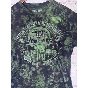 Affliction Mens X Large Live Fast Chris Sniper Skull Graphic T Shirt Black Green