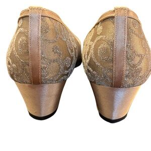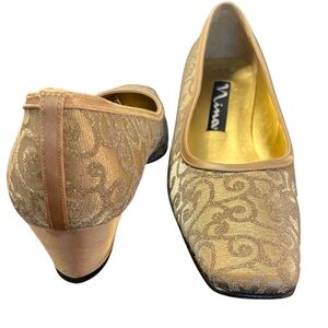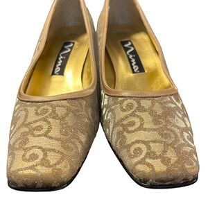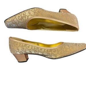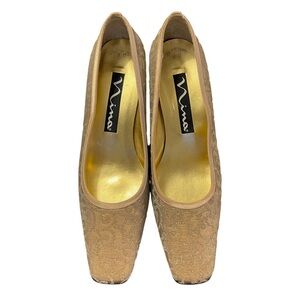 Nina Gold Swirl Fabric 1.75" Block Heel Shoes (8)
