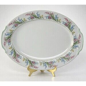 This beautiful vintage Noritake oval serving platter features a soft floral border with pastel spring colors and a gentle green trim, making it a perfect piece for spring table decor, Easter gatherings, and seasonal entertaining.