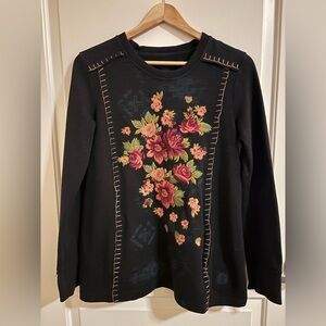 Double D Ranch, Floral Embroidered Black Women's Top Tunic with pockets, small