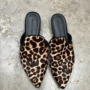 Rebecca Minkoff Brown and Black Mules with Leopard Print