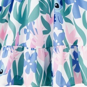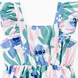 Disney Stitch Girl Dress with Floral and Tropical Plant Print