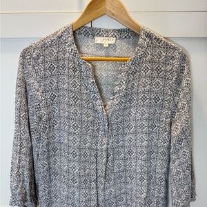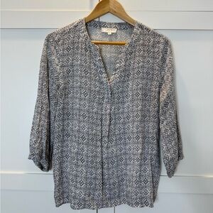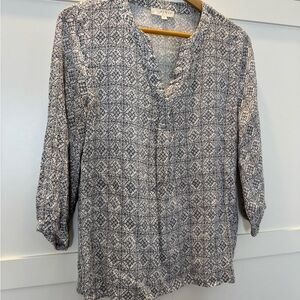 Kenar Gray White Patterned Blouse 3/4 Sleeve Size: Medium