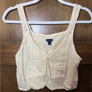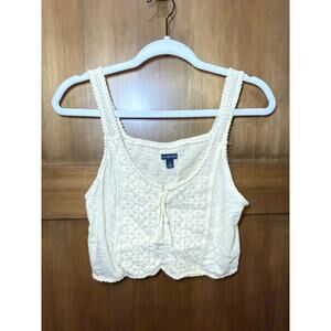 American Eagle Cropped Crochet Tank Top Boho Size Small Chic Cream