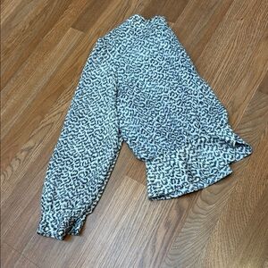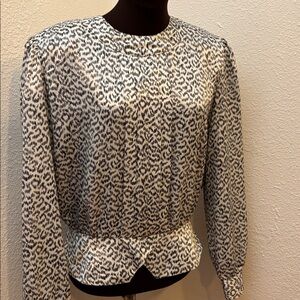 This stylish women's top features a chic leopard print design with a pin-tuck bodice and scoop neck. Complete button back closure with button cuffs. Smooth and silky fabric. Shoulder pads. Disco, retro, whimsy goth, glam style. Great condition/ pre-owned.