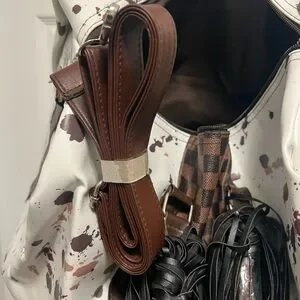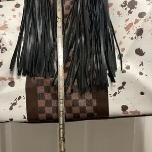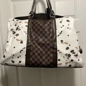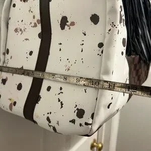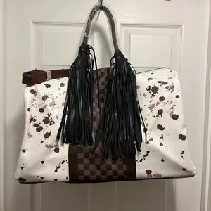 Elevate your style with this chic white and brown checkered women's duffle bag. Perfect for any occasion, this bag combines elegance with functionality. The unique design and quality materials make it a must-have accessory. NWOT. Handles still wrapped in plastic. Never used.