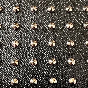 Excellent pre-owned condition. 100% Authentic Saint Laurent Studded Zip Around Wallet in Grain de Poudre. Color: Black/Silver. Style: INN362760. Serial #: INN362760-0714. This Saint Laurent wallet is a striking accessory crafted from black grained leather with an edgy studded design. Featuring silver-toned metal studs in a symmetrical grid pattern, the wallet embodies the modern sophistication of Rive Gauche with a rebellious edge. Black grain de poudre leather with silver-toned metal studs. Silver-toned full metal zipper and pull engraved with Saint Laurent logo. Full zip-around closure for security and easy access. 12 credit card slots, compartments for cash, and a central zippered coin pouch. Saint Laurent Paris branding subtly embossed inside with serial number. Beautiful condition, no scratches or scuffs on the leather. All studs intact with no tarnishing. Interior compartments are clean. Faint hairline scratches at zipper pull, barely visible. Zipper runs smoothly and opens and closes with ease. Leather has been recently conditioned and is ready for its new owner. Purchase comes complete with Saint Laurent gift box, Saint Laurent dust bag and authenticity cards.