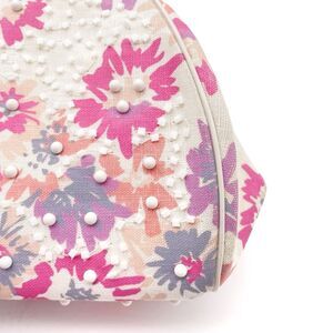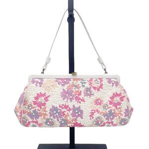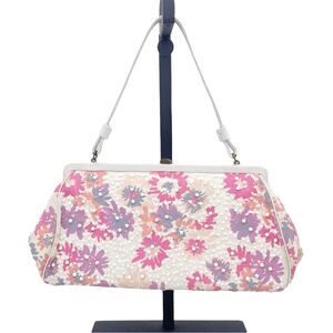 vintage handbag, 60s clutch, mod, floral purse, beaded evening bag, retro accessory, cottagecore, romantic, garden party, bridal purse, Magid bag, white top handle bag