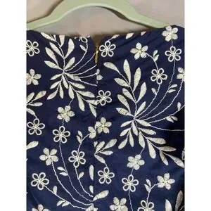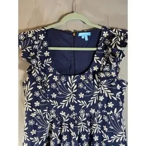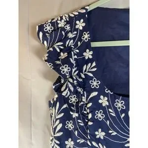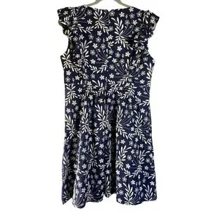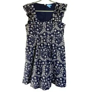 Draper James Navy Blue Floral Embroidered Flutter Sleeve Dress Size 12 Brunch