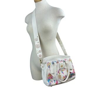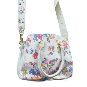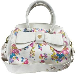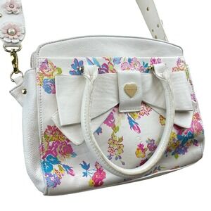 BETSEY JOHNSON White Floral Crossbody Top Handle Vegan Bow Cute Coquette_Flaw