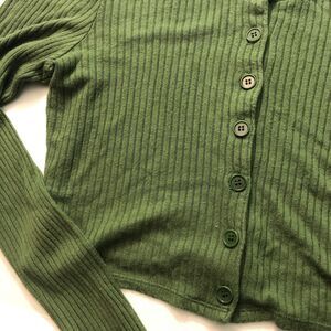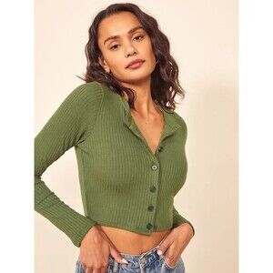 Reformation Jeans Tammy Top Button Front Ribbed Cardigan Green Small