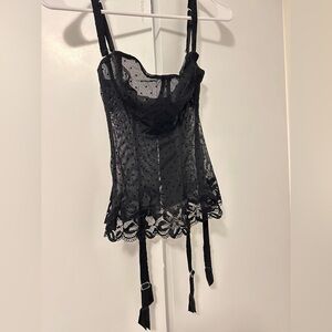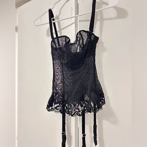 New LA PERLA Vintage Black Sheer Lace Corset Top with garters