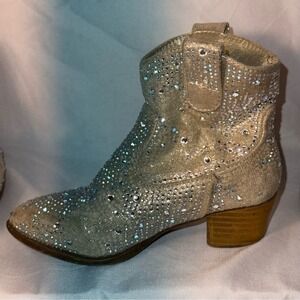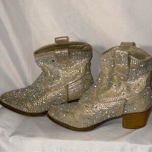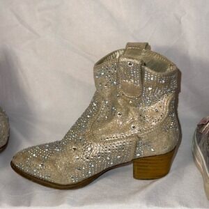 Brown boots - chain is broken in 1 and missing on the other. Rhinestone boots missing rhinestone