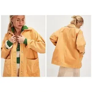 Free People Avery Denim Jacket in Orange We the Free Sz M Oversized Relaxed Fit