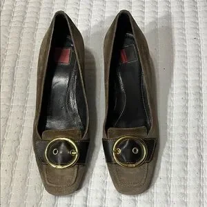 Coach Brown Suede Flats with Gold Accent