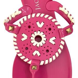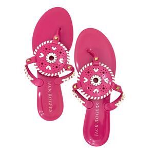 Jack Rogers NWOT Womens Georgica Jelly Sandals Size 9 Bright Pink & White Beachy