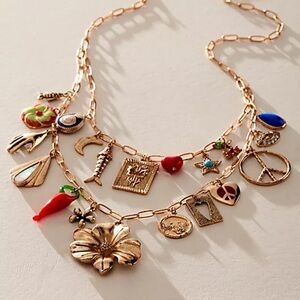 The coolest take on a forever classic, this head-turning charm necklace is featured in a layered design with colorful, vintage-inspired dangle detailing throughout for the perfect collected finish.