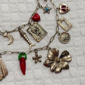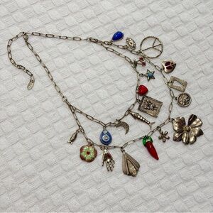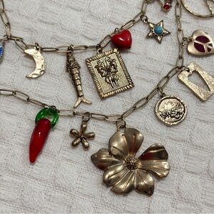 Tags: charm necklace flower power moon fish cherry evil eye red heart peace sign star and many more boho bohemian casual layering layered