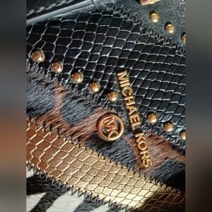 Michael Kors barrel bag. Really cool exterior with multiple animal prints. Good condition. Unique looking piece.